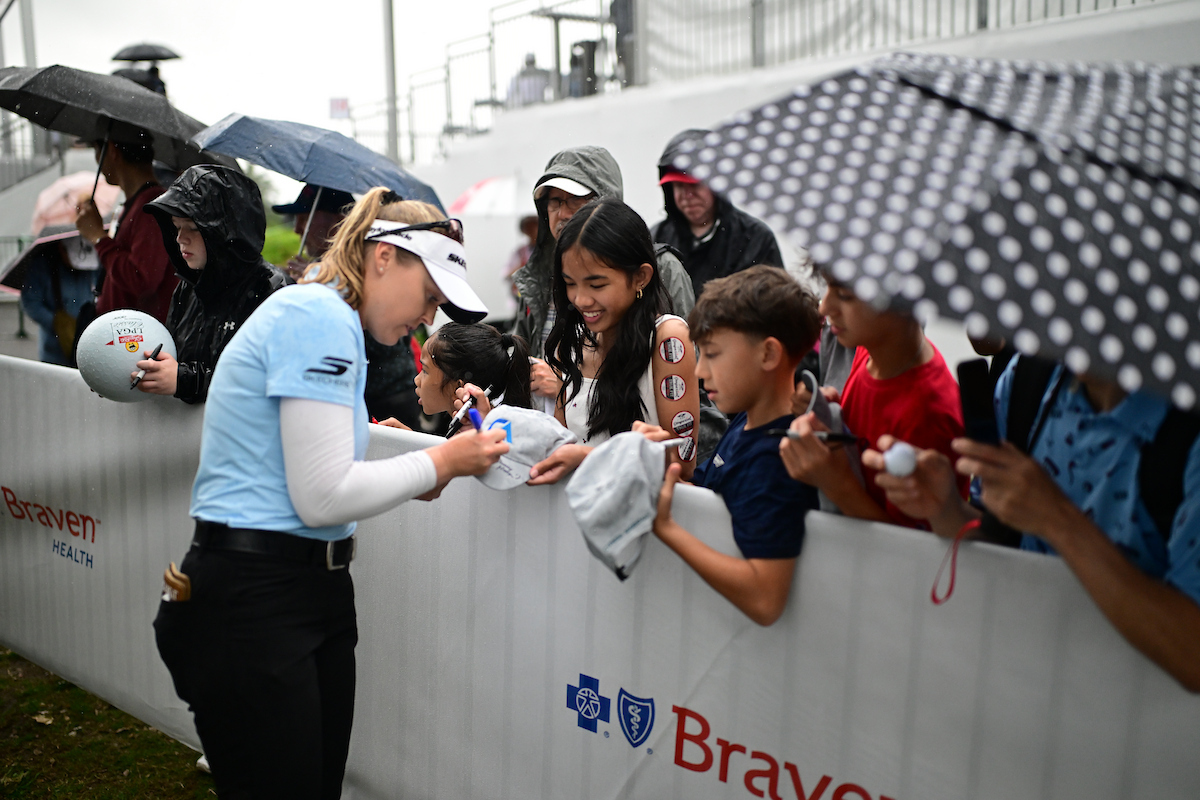 The LPGA Tour has established the following guidelines regarding autographs: No autographs are permitted once a player begins a competitive round, Friday to Sunday. A player may elect to sign autographs prior to or at the conclusion of her round.